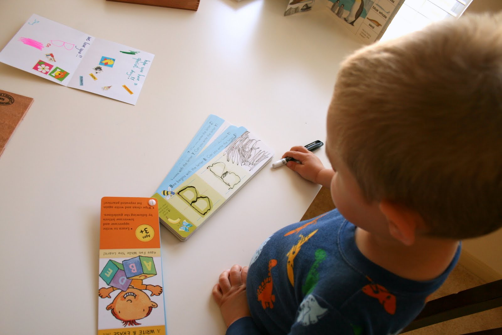 moving on... i can't remember if i've talked about how we started up school time again here... i think i did. we have a neat area in the playroom where momma and i sit down to work on things together. here i am practicing my letters...